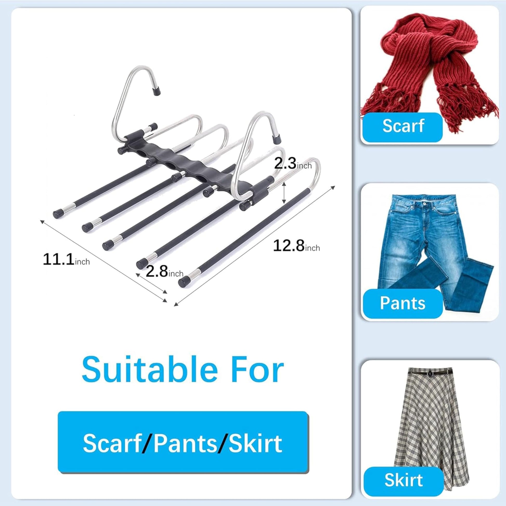 • 5-in-1 Space-Saving Design: Homestrap 5-in-1 hanger effortlessly hangs 5 pants in 1 hanger without damaging the garments, optimizing your closet space.